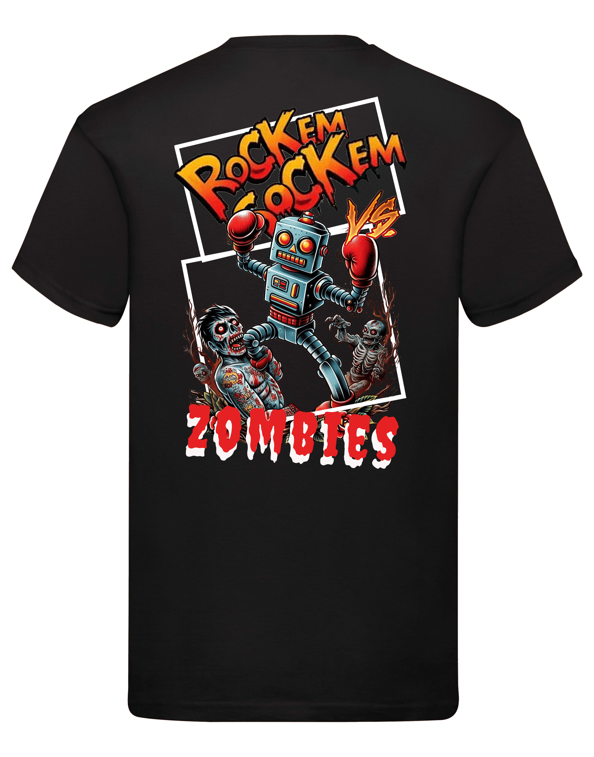 Rock’em Sock’em Robots vs Zombies is our new fun design based on a childhood game and a cross over you didn’t know you needed.